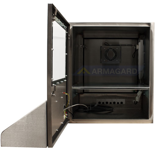 Construit à partir de la nuance alimentaire d'acier inoxydable (316), l'armoire étanche SENC-900 est utilisée à travers l'Europe dans des salles humides et dans l'industrie agro-alimentaire et les halls de fabrication où les utilisateurs souhaitent utiliser un ordinateur standard et des moniteurs (TFT ou CRT) et un équipement qui résiste aux lavages importants (lavages au jet ou lavages au jet sous pression).