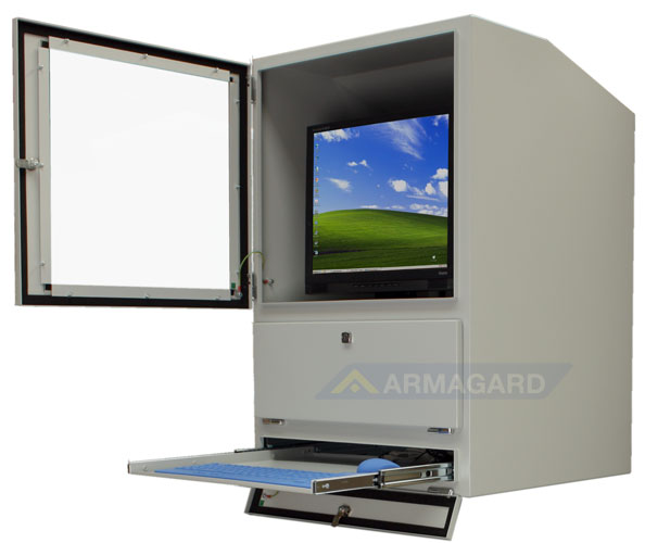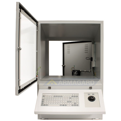 Le PENC-900 d'Armagard est une armoire IP54 en une seule pièce qui offre une protection contre la poussière. Elle est conçue pour protéger un PC standard et des écrans contre la poussière, les éclaboussures de liquide, la saleté, l'huile, la graisse, les impacts importants, le vol et le vandalisme. Fournie avec un tiroir coulissant verrouillable pour le clavier.