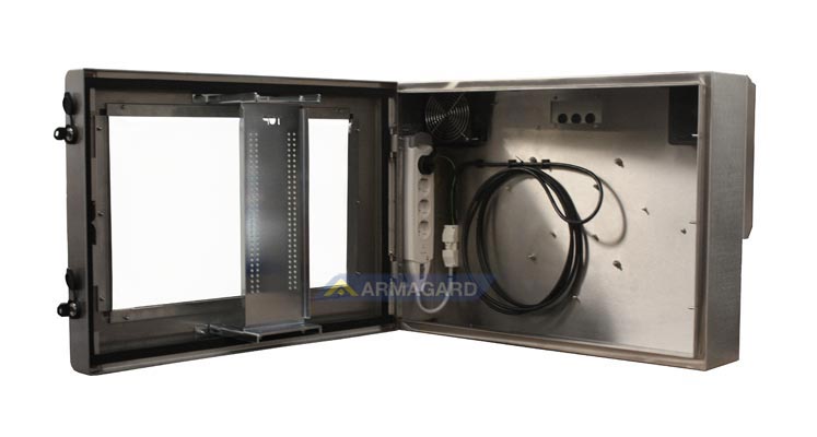 Les armoires Armagard sont construites selon les normes Européennes IP pour assurer une protection contre l’eau, la poussière et les petites particules. Réalisées en acier inoxydable (nuance 316) et fournies avec une vitre anti effraction, les armoires LCD d’Armagard sont fournies complètement assemblées avec un support interne pour le moniteur. Elles peuvent être montées avec des supports muraux, au plafond ou sur un support sur pied (tous les supports sont vendus séparemment).