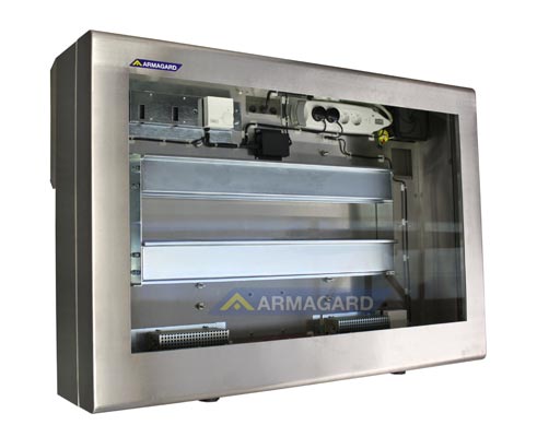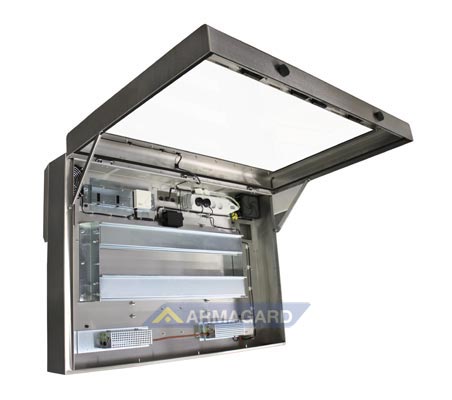 Les armoires Armagard sont construites selon les normes Européennes IP et Internationales NEMA pour assurer la protection contre l’eau et la poussière. Construites en acier peint ou en acier inoxydable, elles sont équipées d’une vitre ati effraction et sont livrées complètement assemblées avec un support de fixation pour l’écran, les supports muraux étant en option.