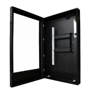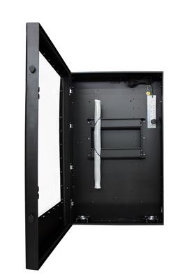 Verrouillable et sécurisée, cette armoire pour écran plat en portrait est aux normes IP54. Offre la meilleure solution possible pour les infos des cinémas ou l’affichage publicitaire destiné au public, soit en environnement interne ou externe, de manière sécurisée.
