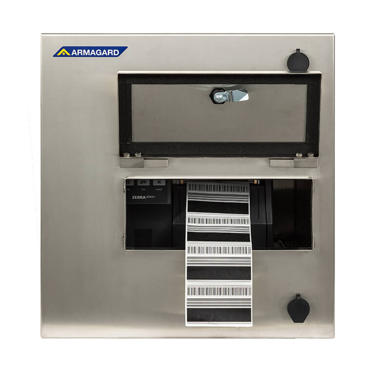 Le SPRI-100 d'Armagard constitue une méthode facile pour le retour des étiquettes ou du papier grâce à sa trappe placée sur l'avant de la porte du capot. Disponible avec des modules chauffants pour les environnements réfrigérés, le capot pour imprimante SPRI-100 est utilisé par les distributeurs d'aliments à travers l'Europe.