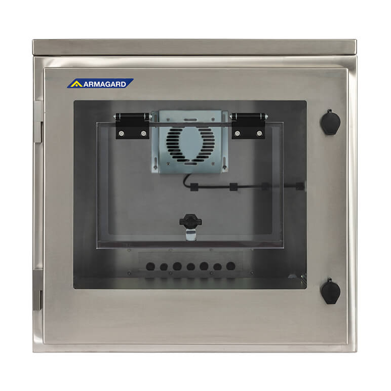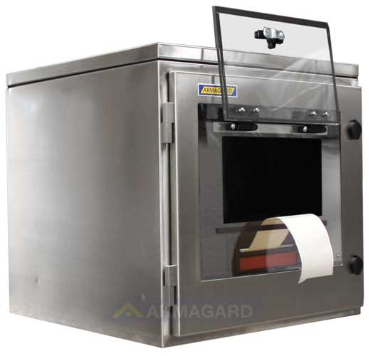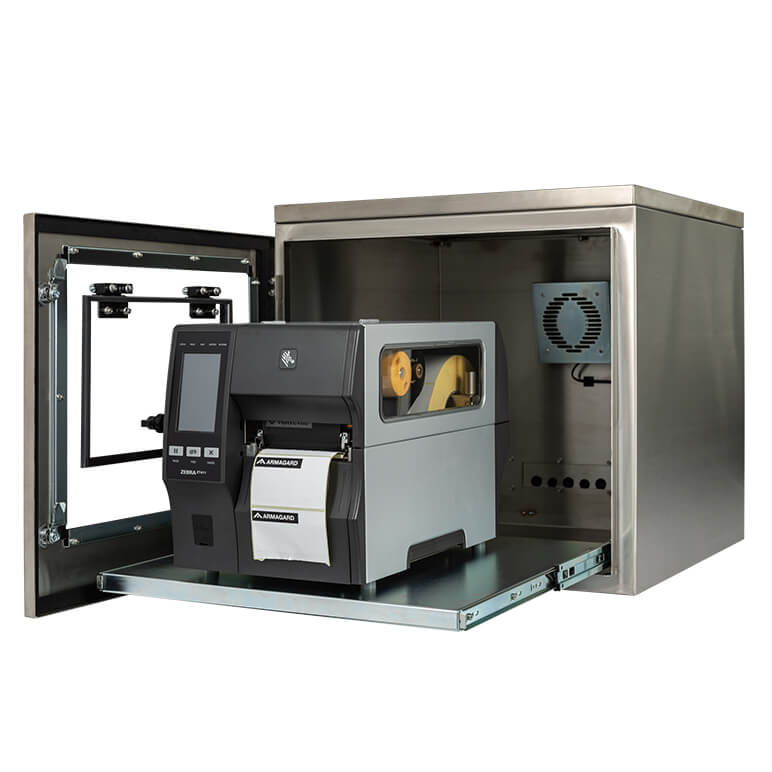 Le capot étanche pour protection imprimante IP65 d'Armagard propose une méthode pratique de retour d'étiquettes ou de papier via une trappe qui se situe dans la porte. Disponible avec des modules chauffants pour les environnements réfrigérés, le capot pour imprimante SPRI-400 est utilisé par les leaders de l'agro-alimentaire à travers l'Europe.